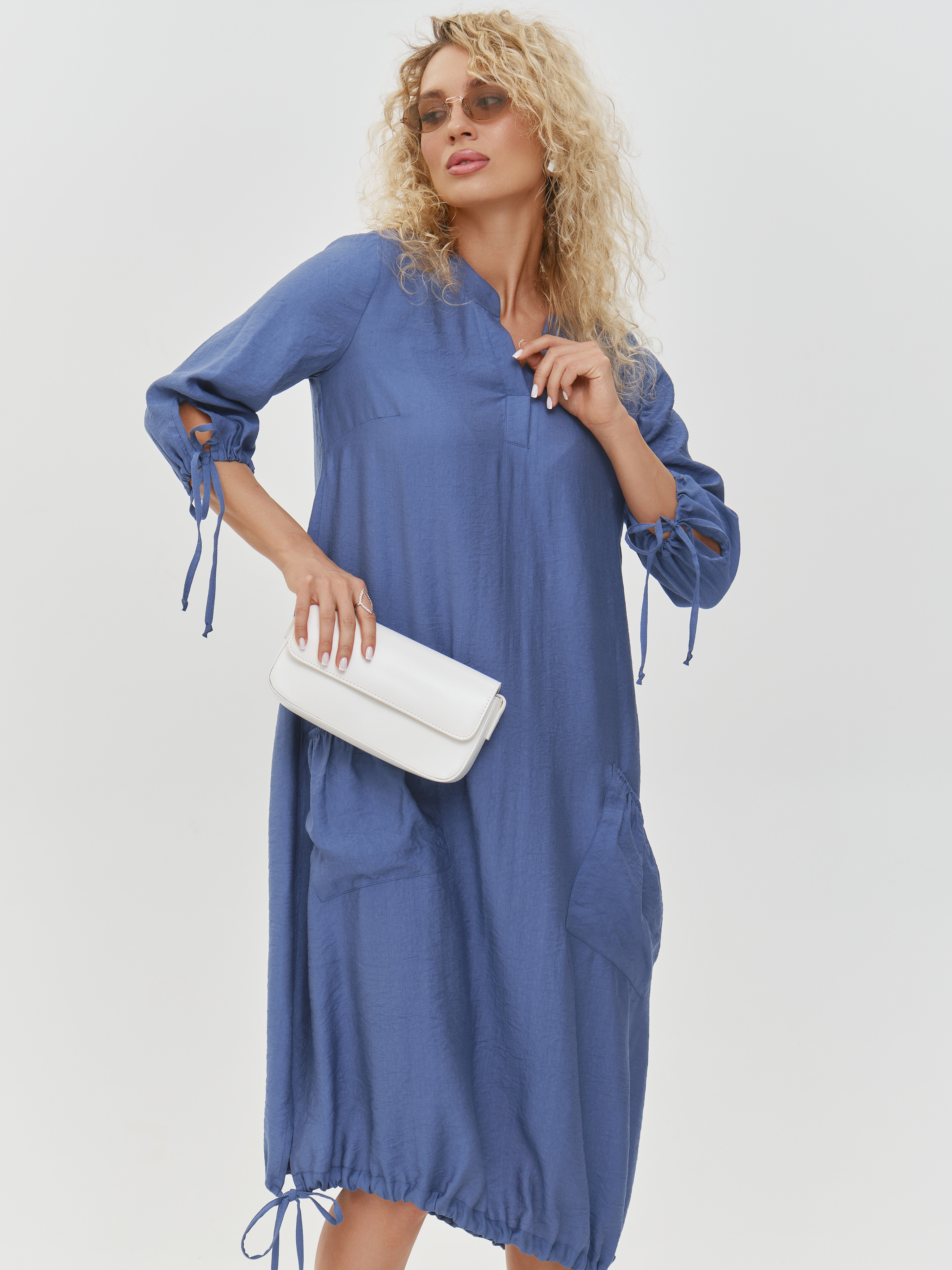 Платье БОХО с карманами, голубой (голубой / 3XL)