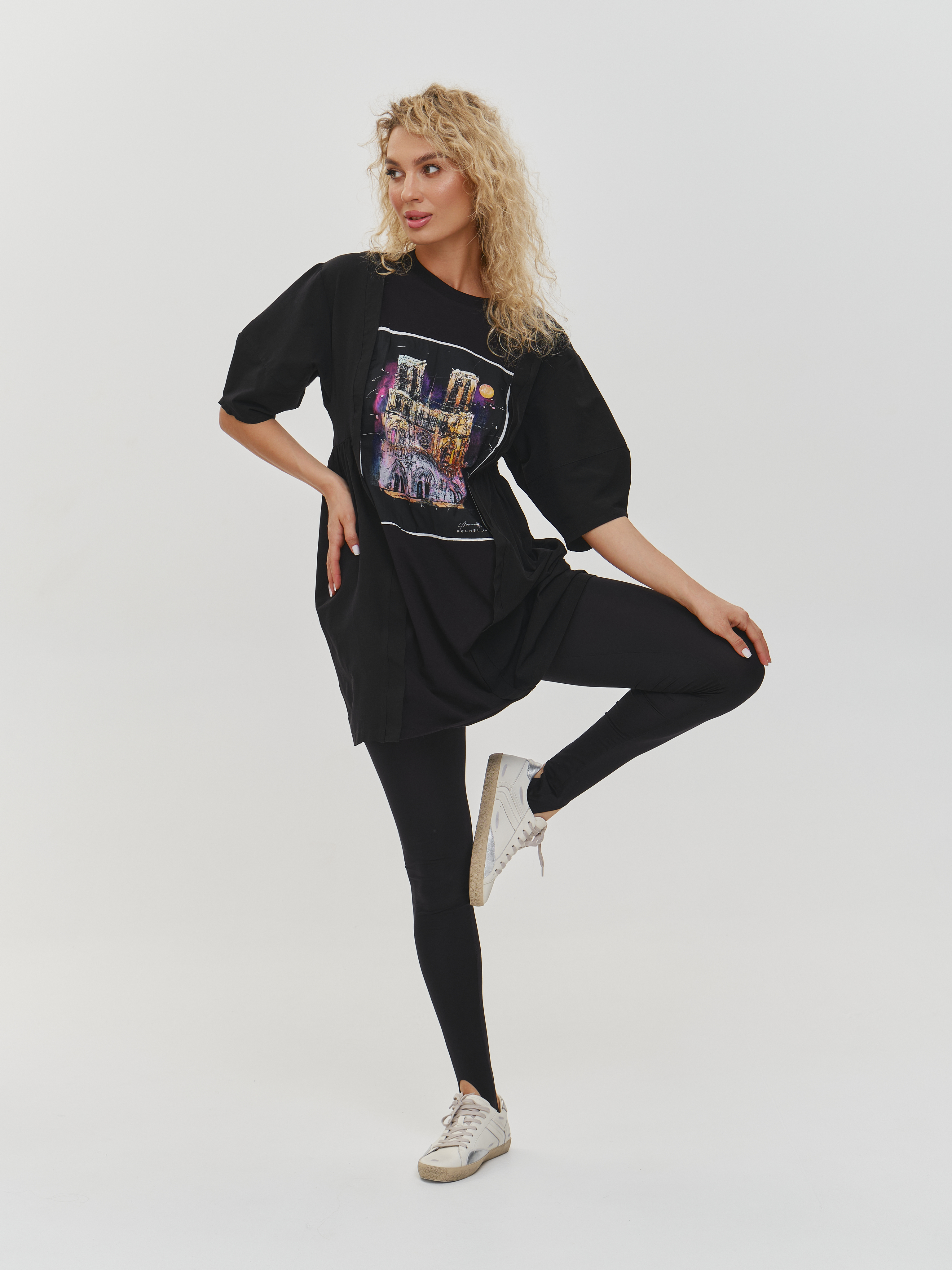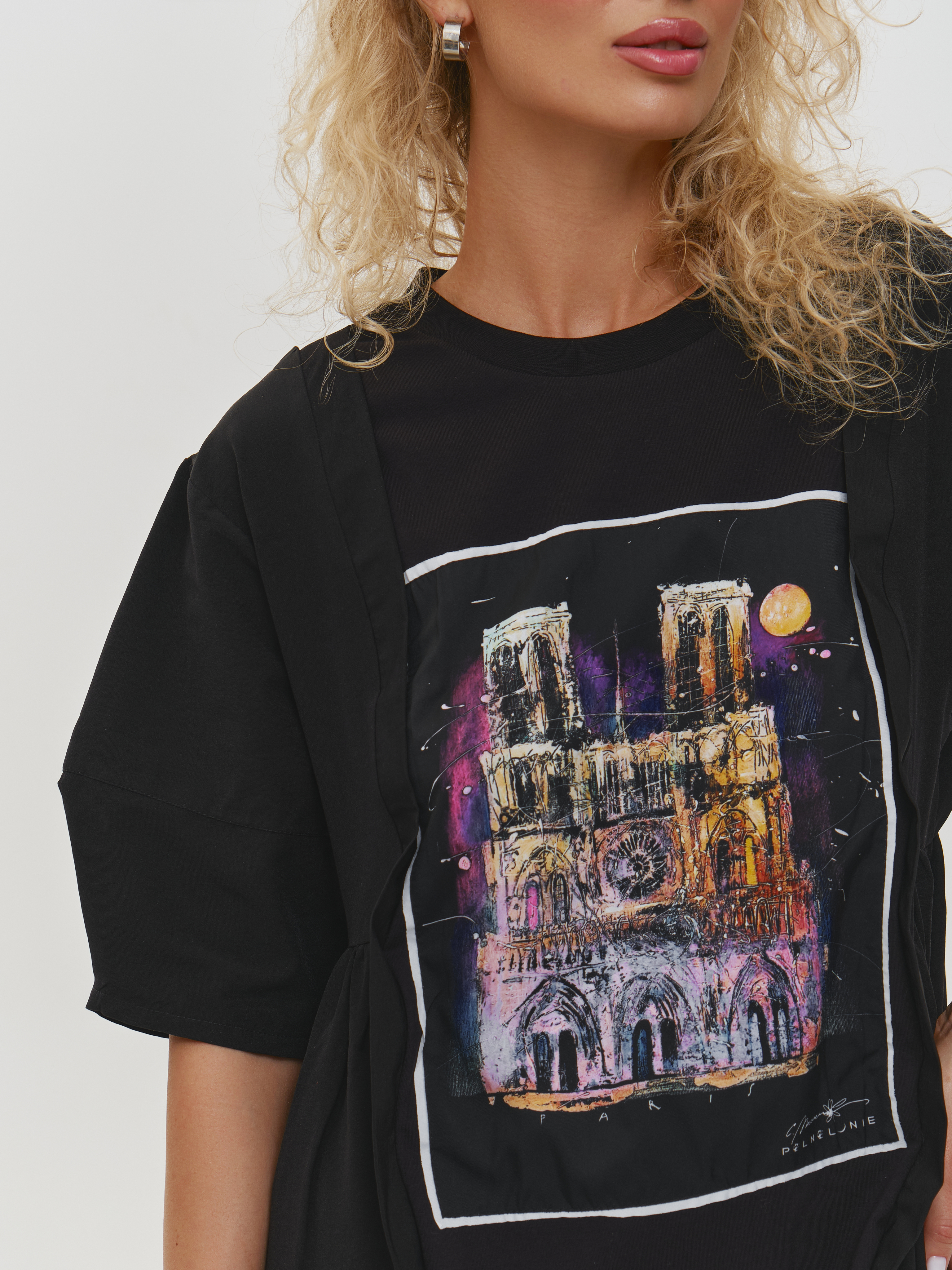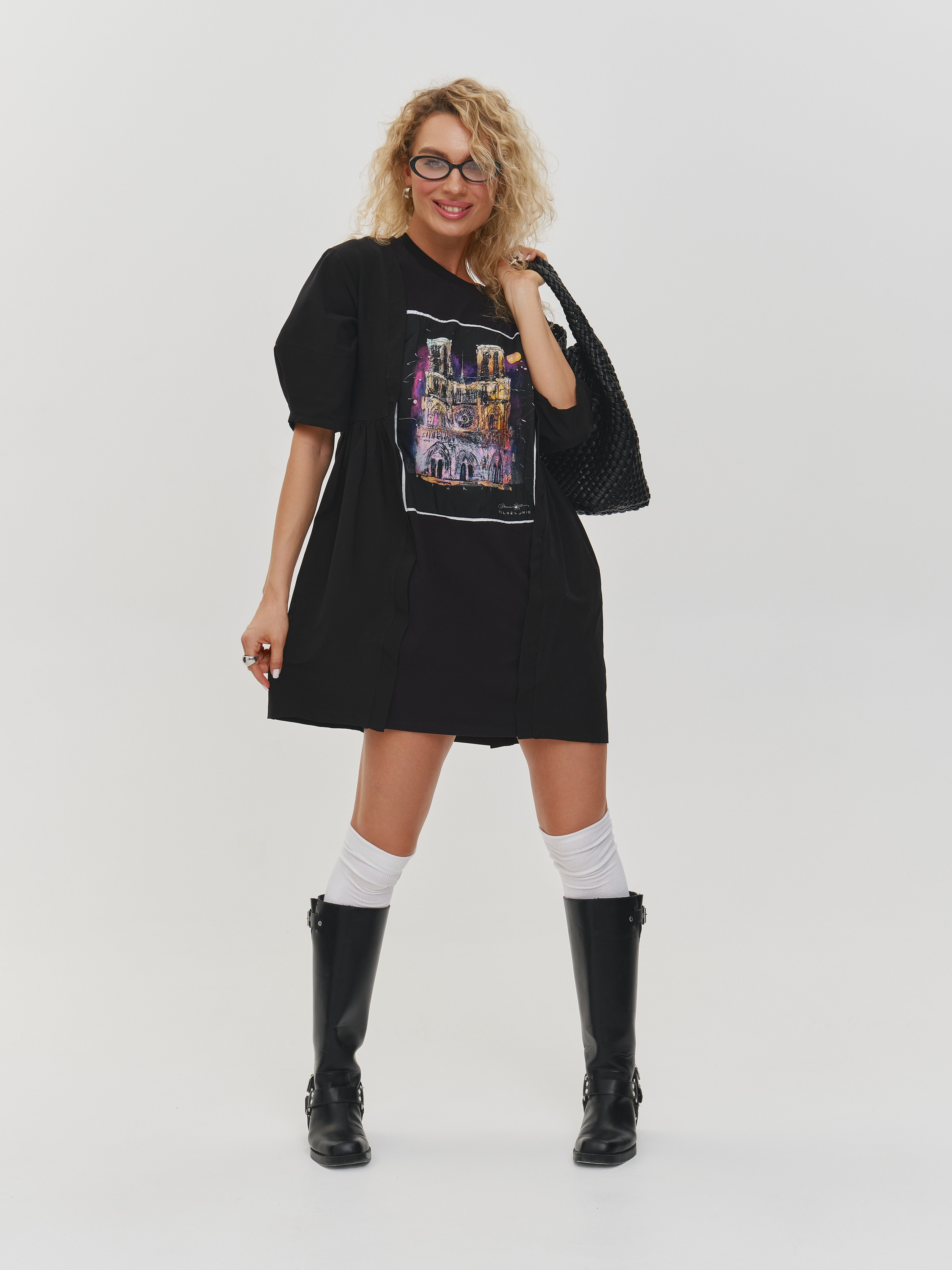 Платье футболка с принтом ПАРИЖ, черное (черный / 3XL)