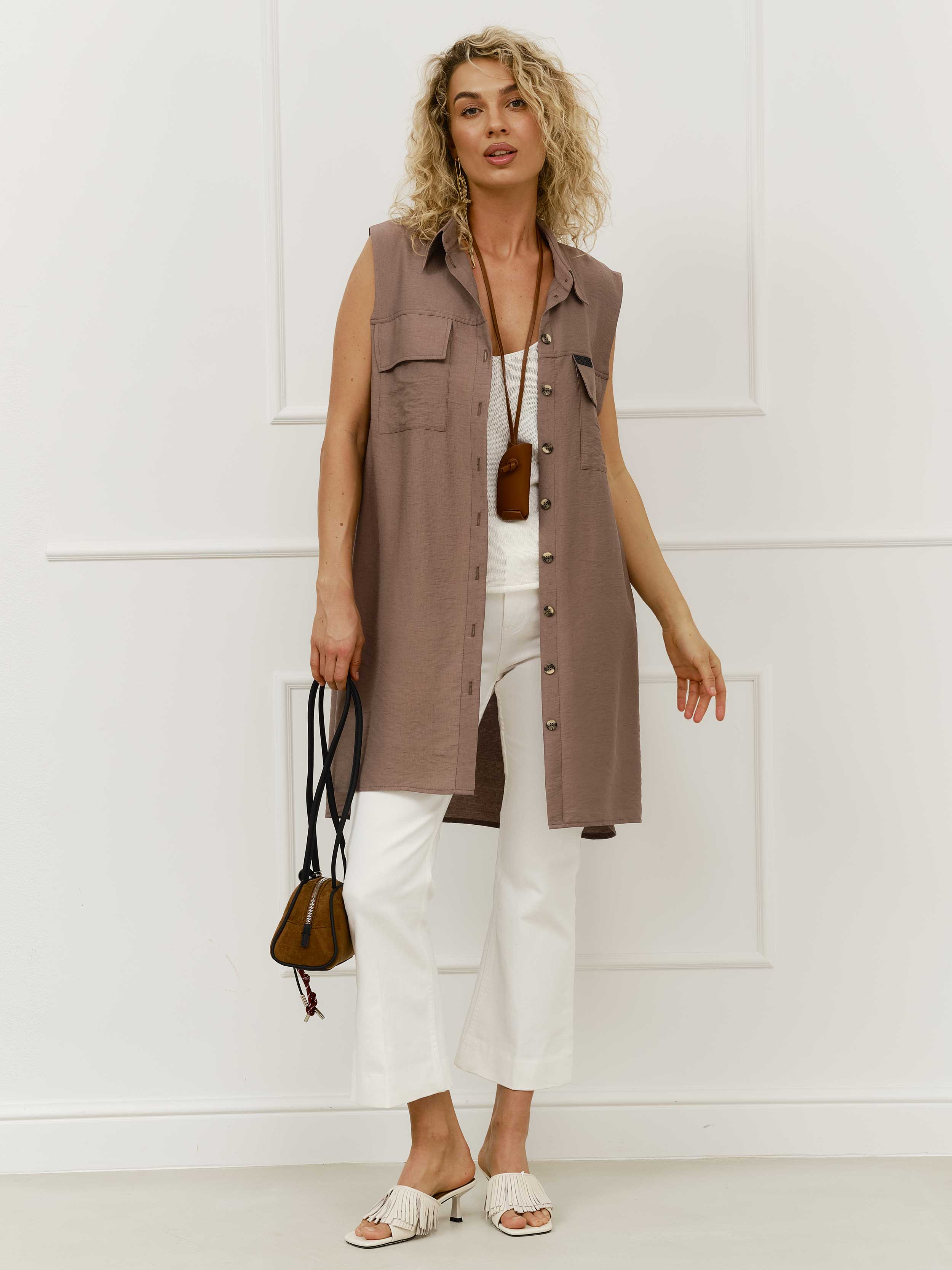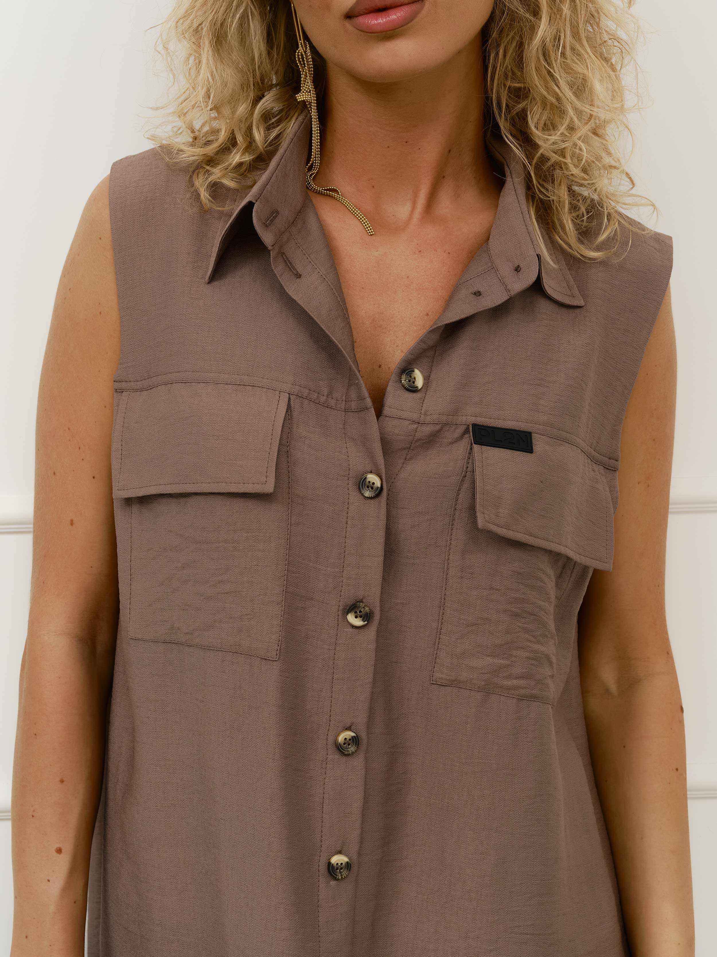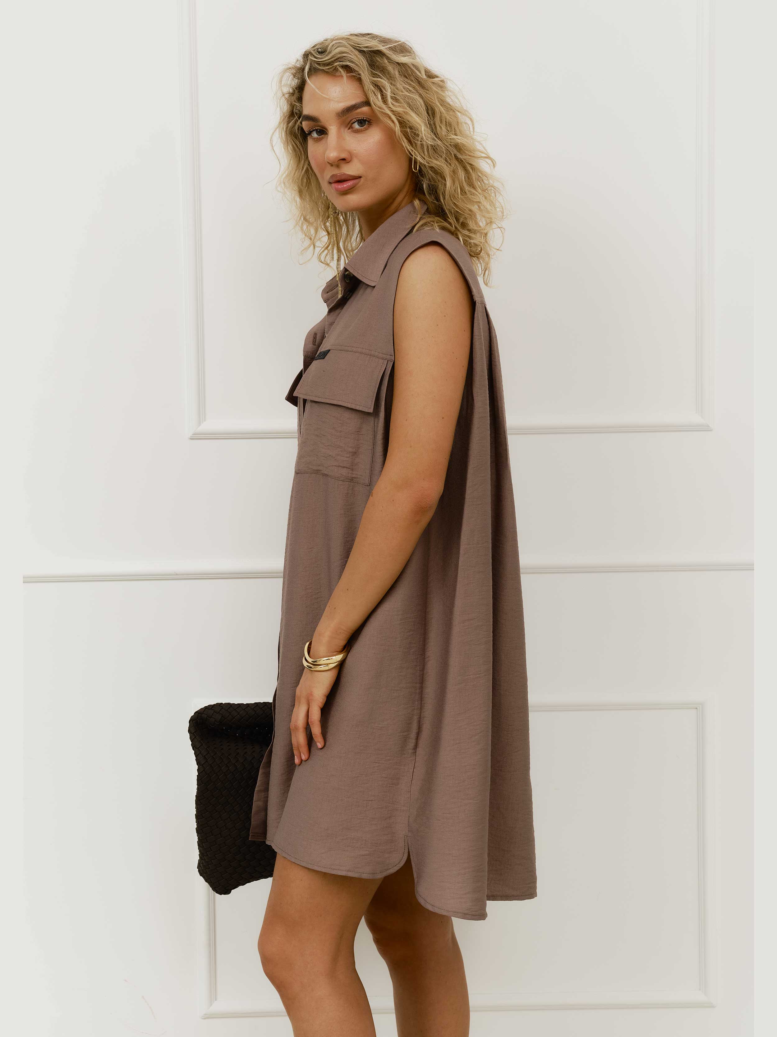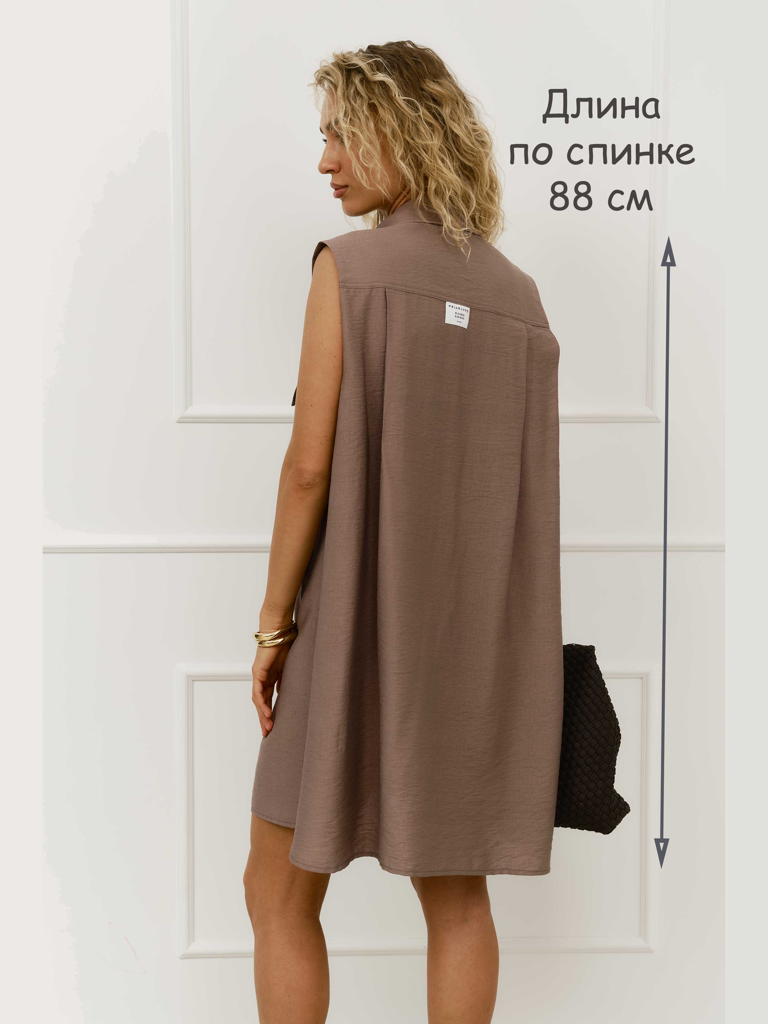 Платье-рубашка с карманами, какао (какао / XS/S)