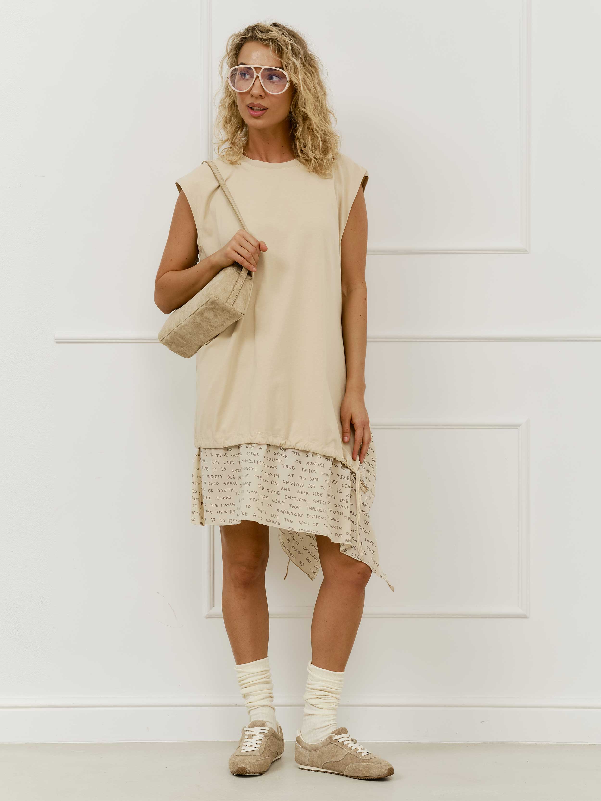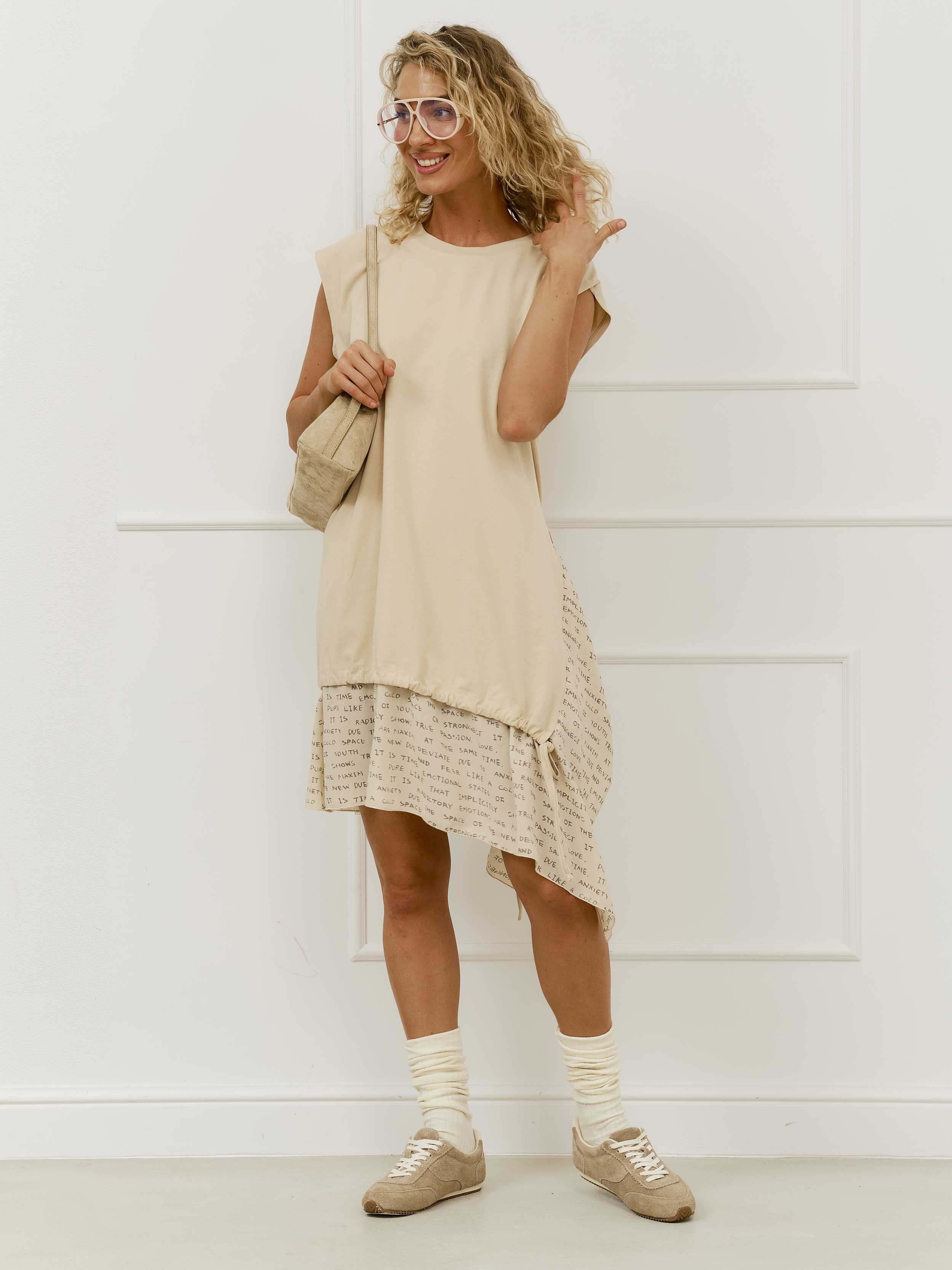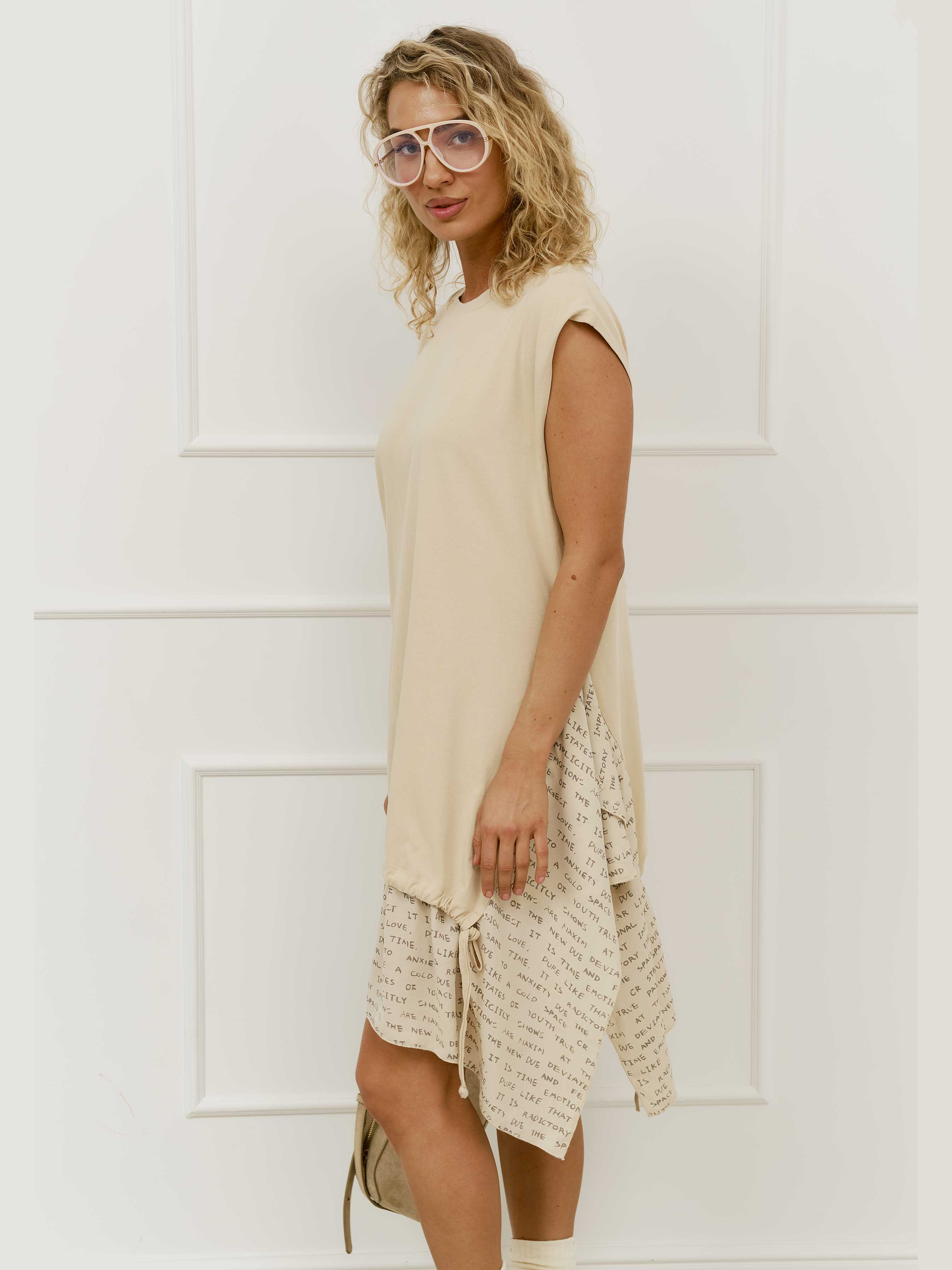 Платье с воланами буквы, бежевый (бежевый / 7XL)