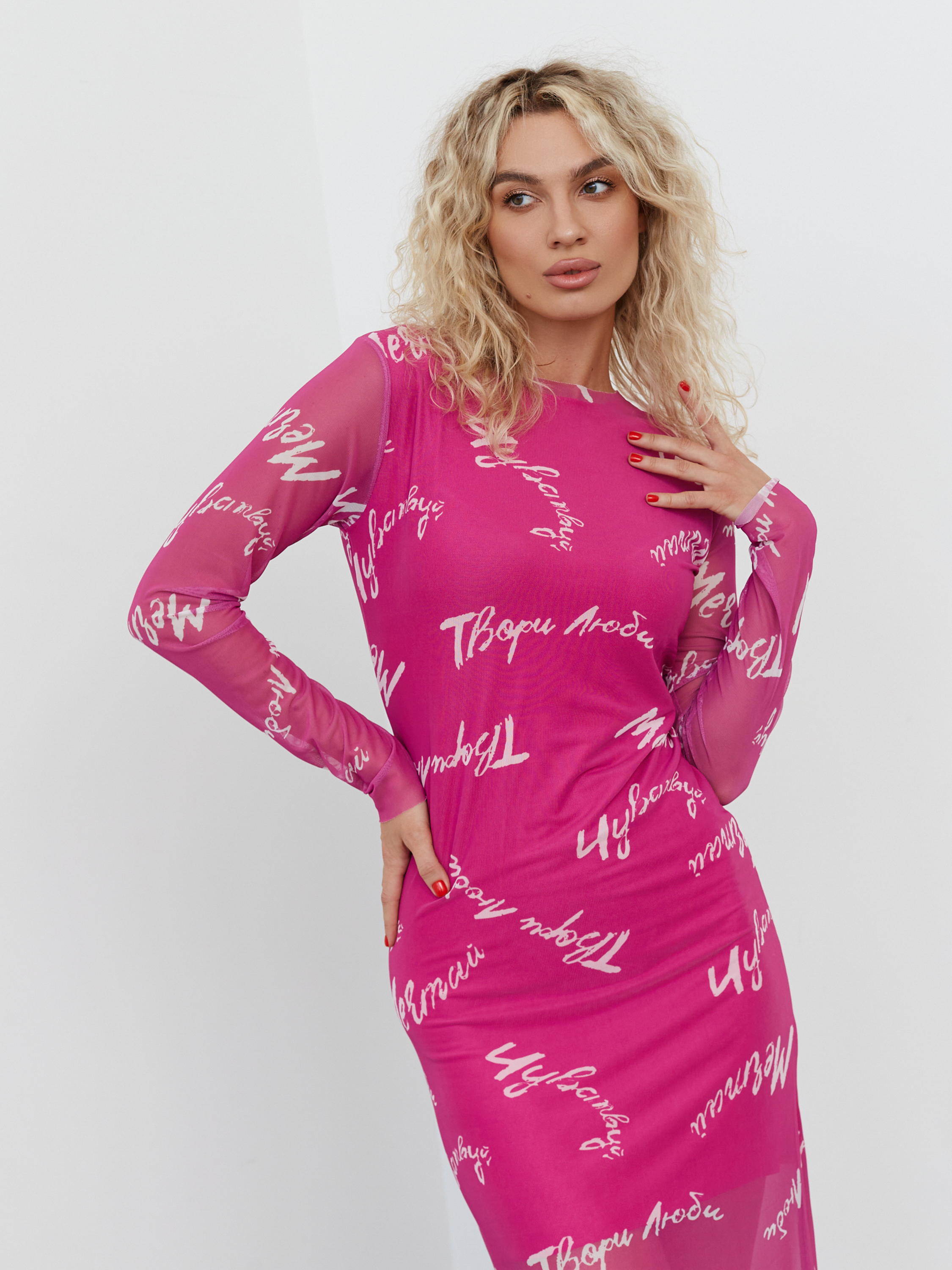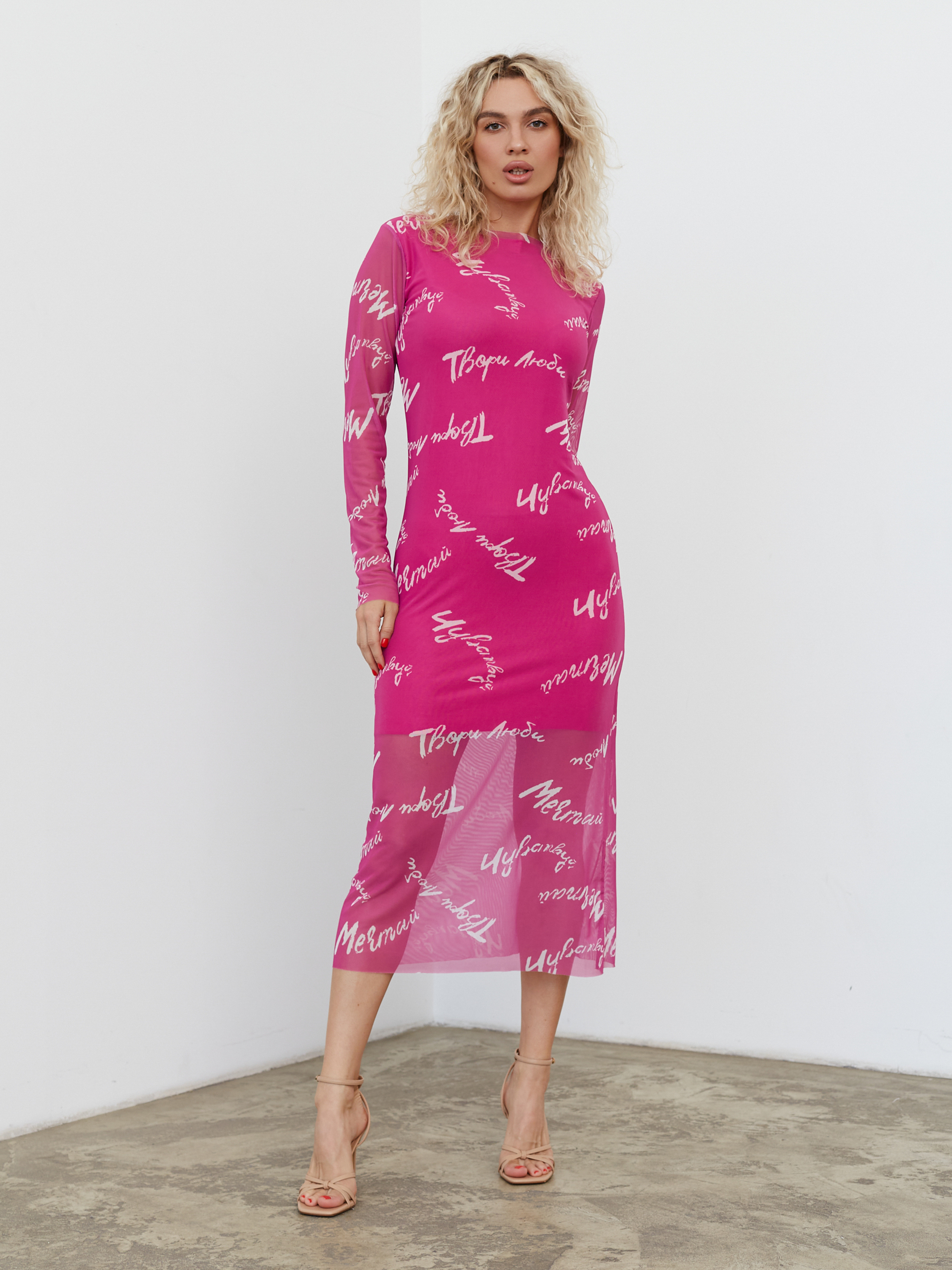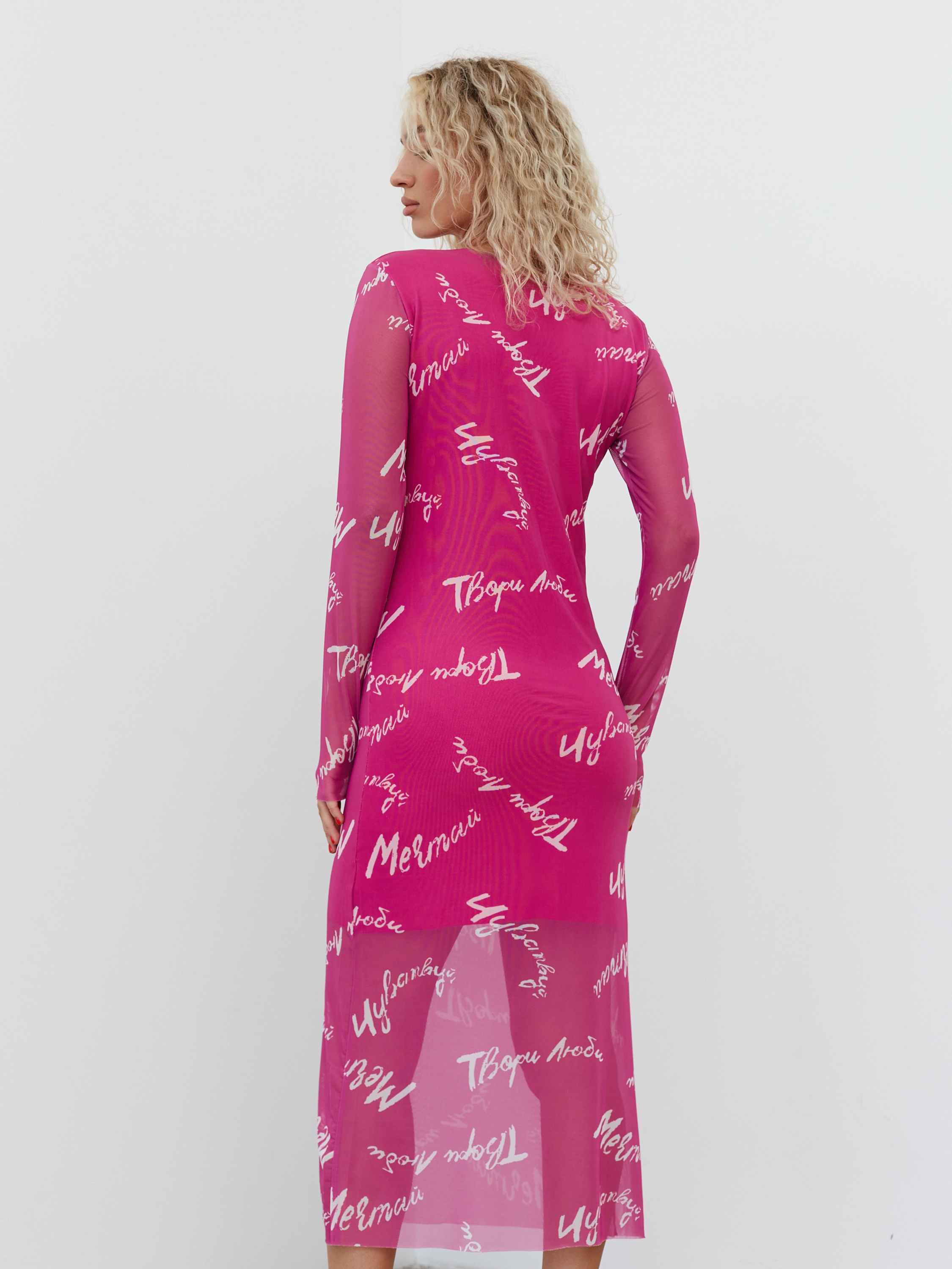 Платье из нежной сетки, на подкладе ( 50% вискоза, 50% полиэстер). Верхний слой выполнен из синтетического волокна (100% полиэстер).