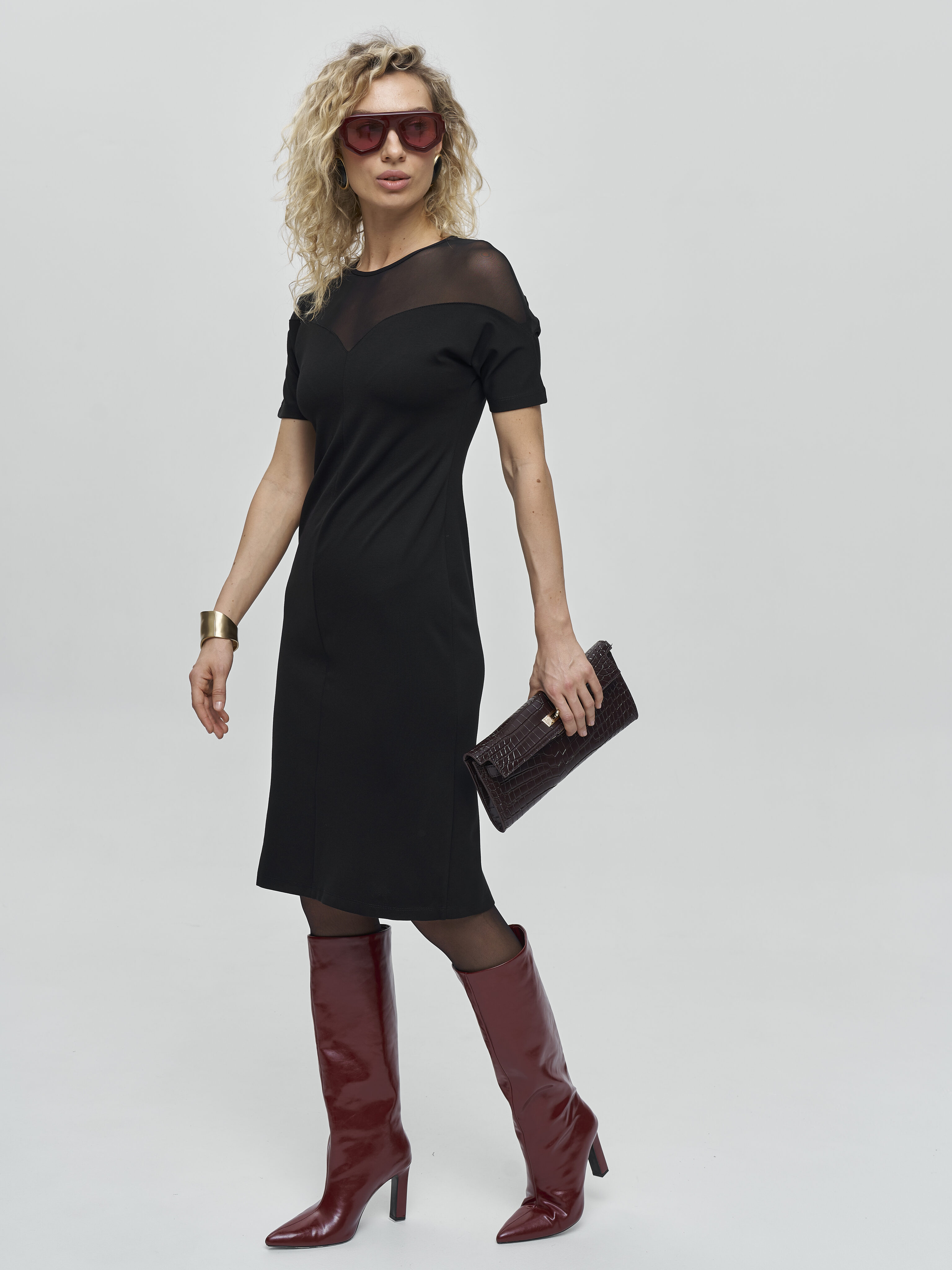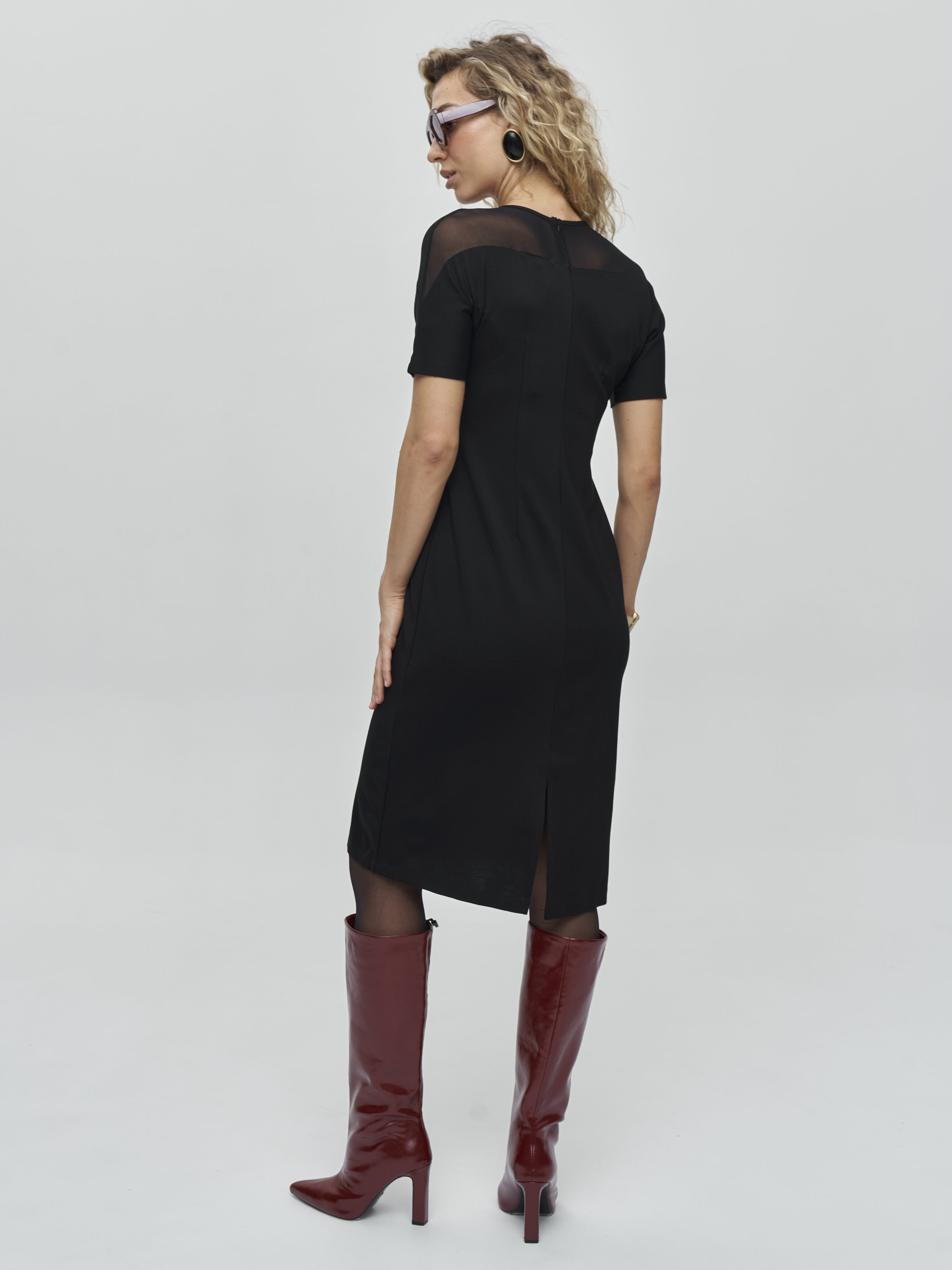 Платье вечернее со вставкой на груди, черное (черный / S)